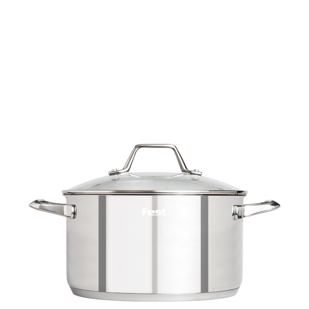 Η κατσαρόλα Fest Reflection αποτελεί την ιδανική επιλογή για μαγείρεμα με ακρίβεια και ασφάλεια. Με κομψό σχεδιασμό και στιβαρή κατασκευή από ανοξείδωτο ατσάλι 18/10, προσφέρει άψογη απόδοση και ανθεκτικότητα στον χρόνο. Το γυάλινο καπάκι πάχους 4mm επιτρέπει τον συνεχή έλεγχο του φαγητού, ενώ οι εσωτερικές ενδείξεις μέτρησης προσθέτουν πρακτικότητα στην καθημερινή χρήση.