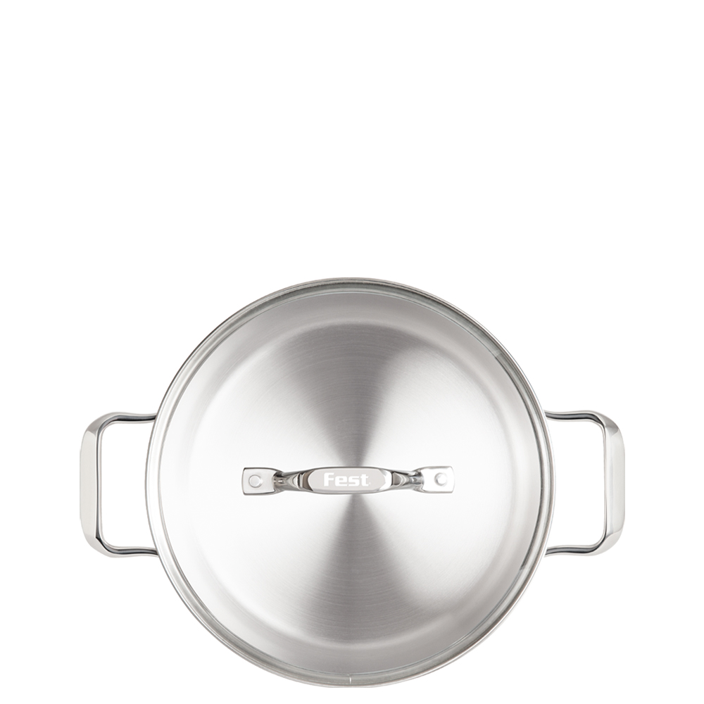 Η κατσαρόλα Fest Reflection αποτελεί την ιδανική επιλογή για μαγείρεμα με ακρίβεια και ασφάλεια. Με κομψό σχεδιασμό και στιβαρή κατασκευή από ανοξείδωτο ατσάλι 18/10, προσφέρει άψογη απόδοση και ανθεκτικότητα στον χρόνο. Το γυάλινο καπάκι πάχους 4mm επιτρέπει τον συνεχή έλεγχο του φαγητού, ενώ οι εσωτερικές ενδείξεις μέτρησης προσθέτουν πρακτικότητα στην καθημερινή χρήση.