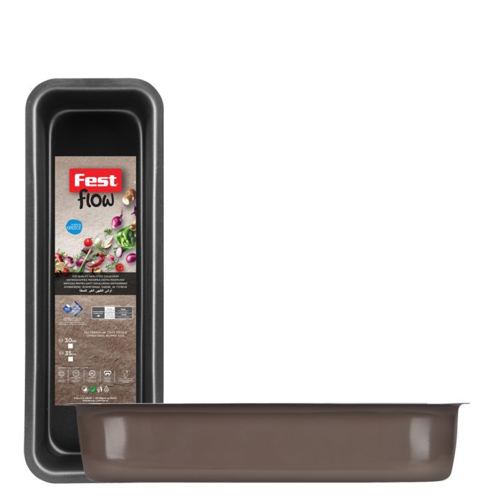 Η Αντικολλητική Ορθογώνια Φόρμα Νο30 της νέας σειράς αντικολλητικών σκευών Flow της Fest ήρθε για να κάνει τη μαγειρική απόλαυση! Η αντικολλητική επικάλυψη TEFLON με την εγγύηση ποιότητας της Chemours σας προσφέρει, εύκολο, γρήγορο και υγιεινό μαγείρεμα!