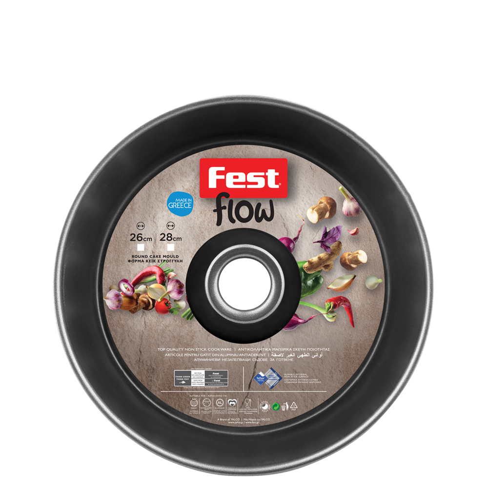 Η Αντικολλητική Στρογγυλή Φόρμα Νο26 της νέας σειράς σκευών Flow της Fest ήρθε για να κάνει τη μαγειρική απόλαυση! Η αντικολλητική επικάλυψη TEFLON με την εγγύηση ποιότητας της Chemours σας προσφέρει, εύκολο, γρήγορο και υγιεινό μαγείρεμα!