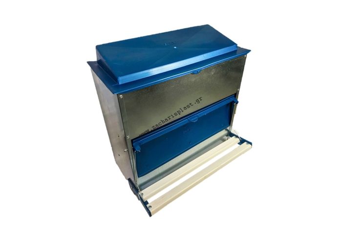 Αυτόματη ταΐστρα ορνίθων, 35 kg διπλής όψεως. Καινοτόμος σχεδιασμός για το ταίσμα των ορνίθων από 2 πλευρές. Κατασκευασμένη από ανθεκτικό