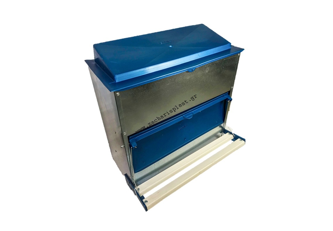 Αυτόματη ταΐστρα ορνίθων 35 kg.  Οι ταΐστρες ανοίγουν αυτόματα μόνο από το βάρος μιας όρνιθας, αποκλείοντας έτσι ποντίκια ή πουλιά