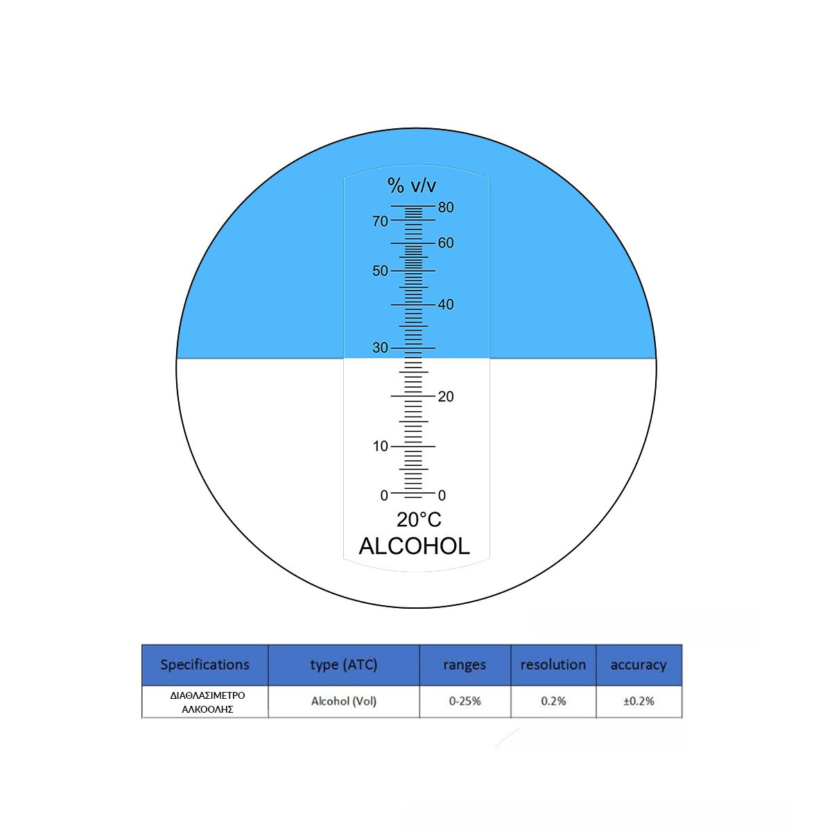Διαθλασίμετρο Αλκοόλης Οπτικό (Vol: 0-80%)