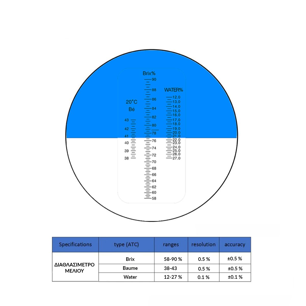 Διαθλασίμετρο μελιού, ειδικό για τη μέτρηση των σακχάρων και της υγρασίας του μελιού