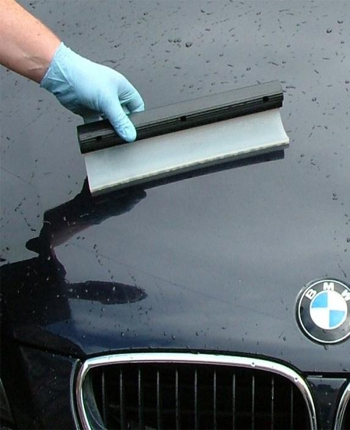 Υδρολεπίδα σιλικόνης για απομάκρυνη νερού απο λείες εξωτερικές επιφάνειες, παρμπρίζ με μια κίνηση. Απομακρύνει το νερό πιο γρήγορα απο μεγάλες επιφάνειες απο ότι τα δέρματα, εύχρηστο, χωρίς να προκαλεί γρατζουνιές. Τα δέρματα χρειάζονται για γωνίες και δυσπρόσιτα σημεία. Μεγάλη διάρκεια χρήσης.