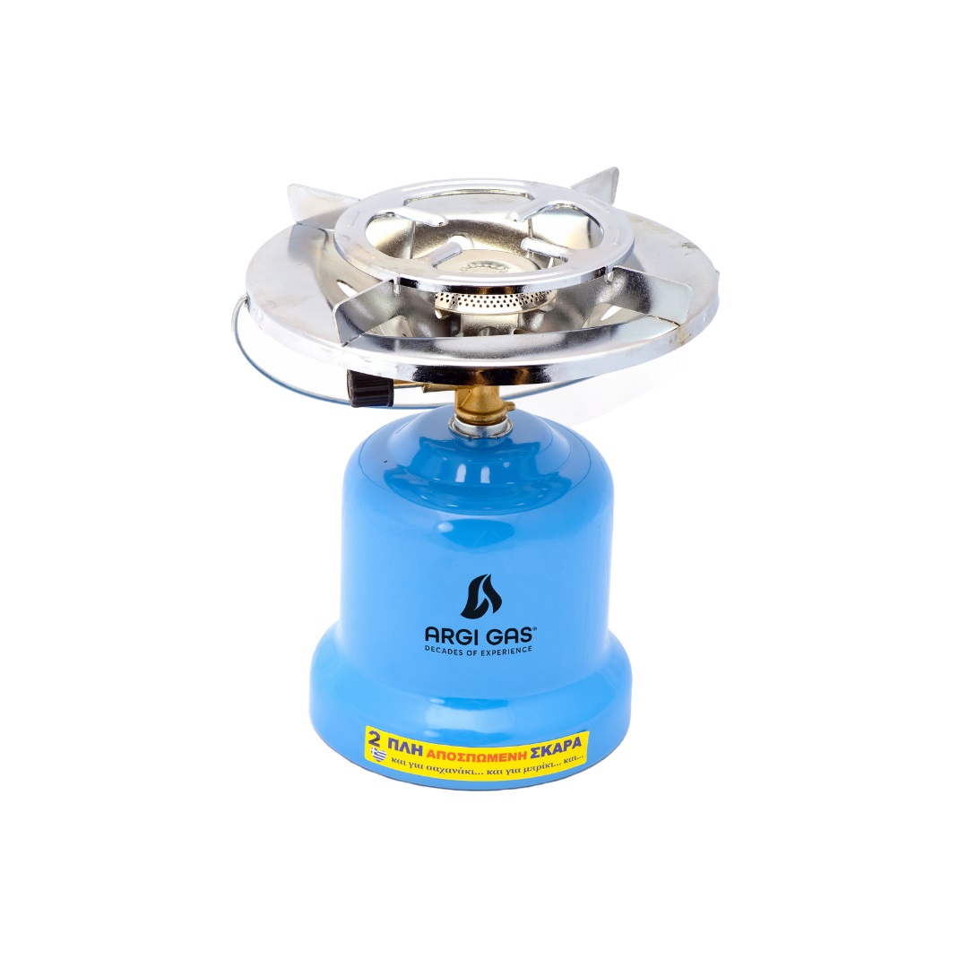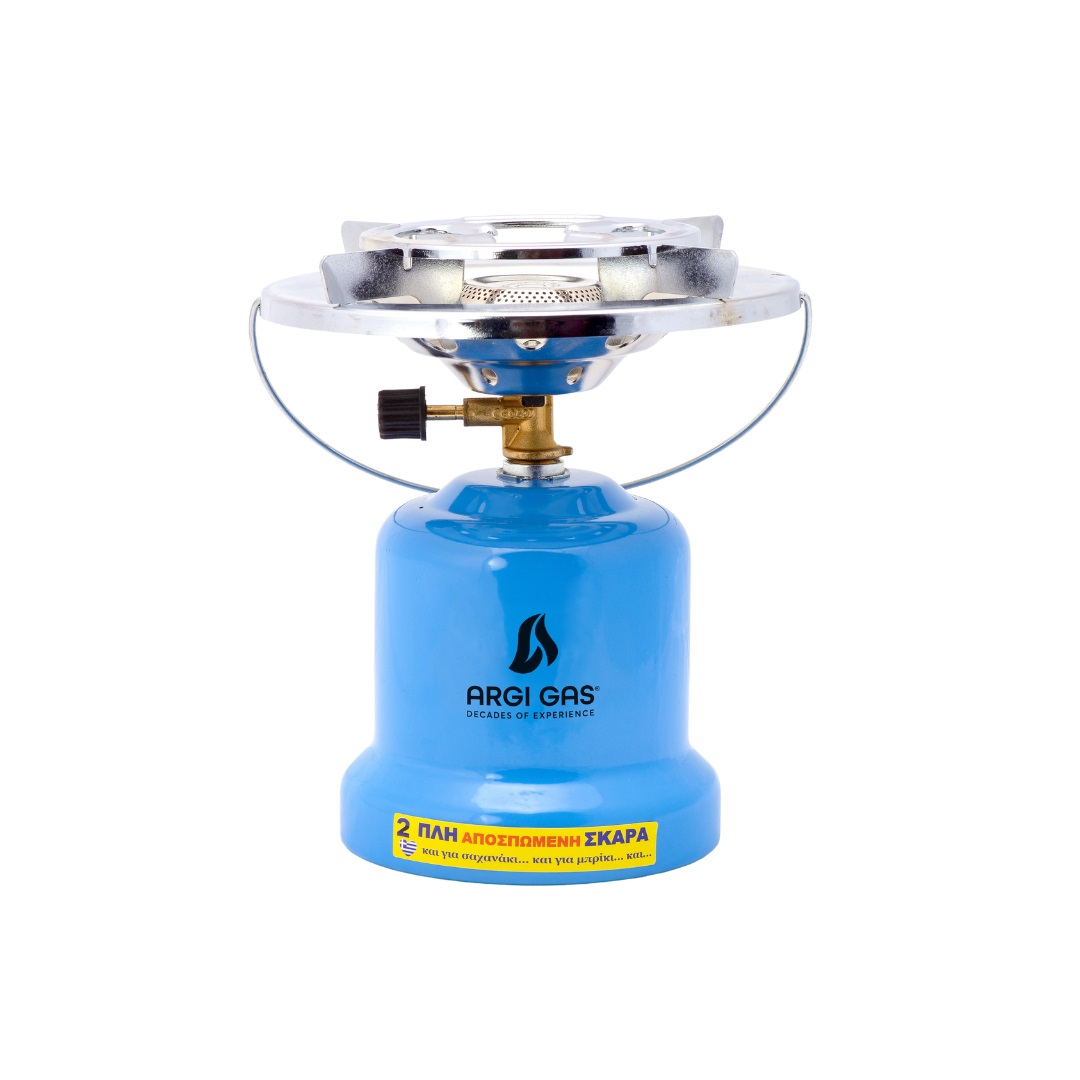 Παραδοσιακό πλαστικό καμινέτο υγραερίου με μεγάλο σταθερό σχαράκι και κουμπί απόλυτου ελέγχου της φλόγας. Το καμινέτο Zamac έχει ειδικά σχεδιασμένο