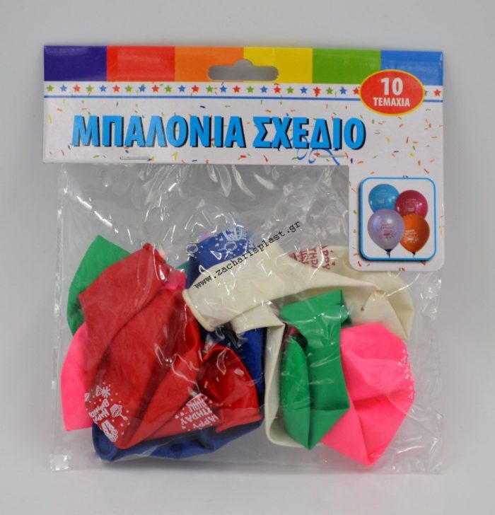 Μπαλόνια με σχέδιο για παιδικά πάρτυ σε διάφορα χρώματα σε συσκευασία 10 τεμαχίων.
