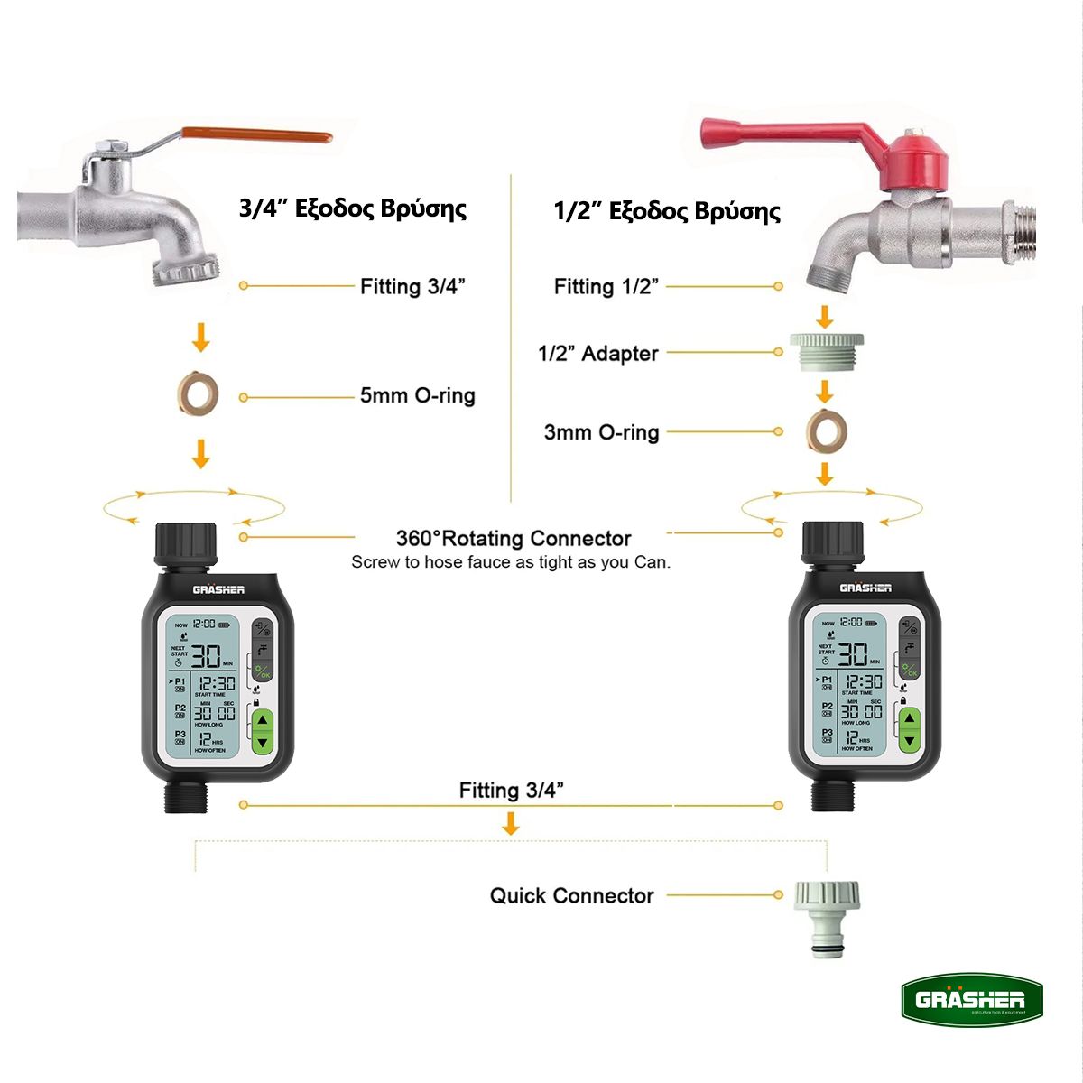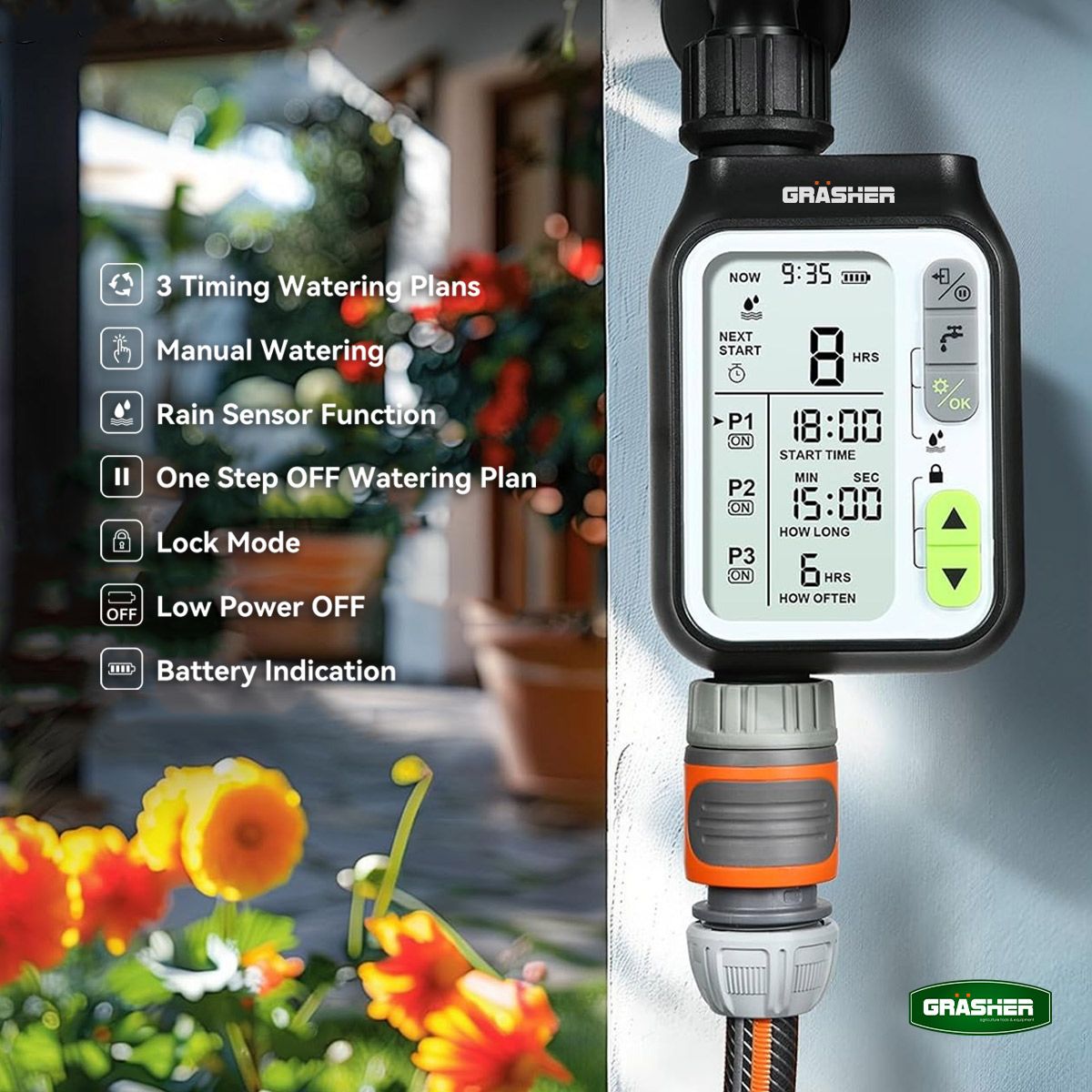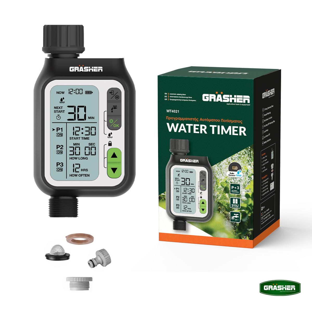 Προγραμματιστής Ποτίσματος Ψηφιακός GRASHER WT2044 – 1 Εξόδου