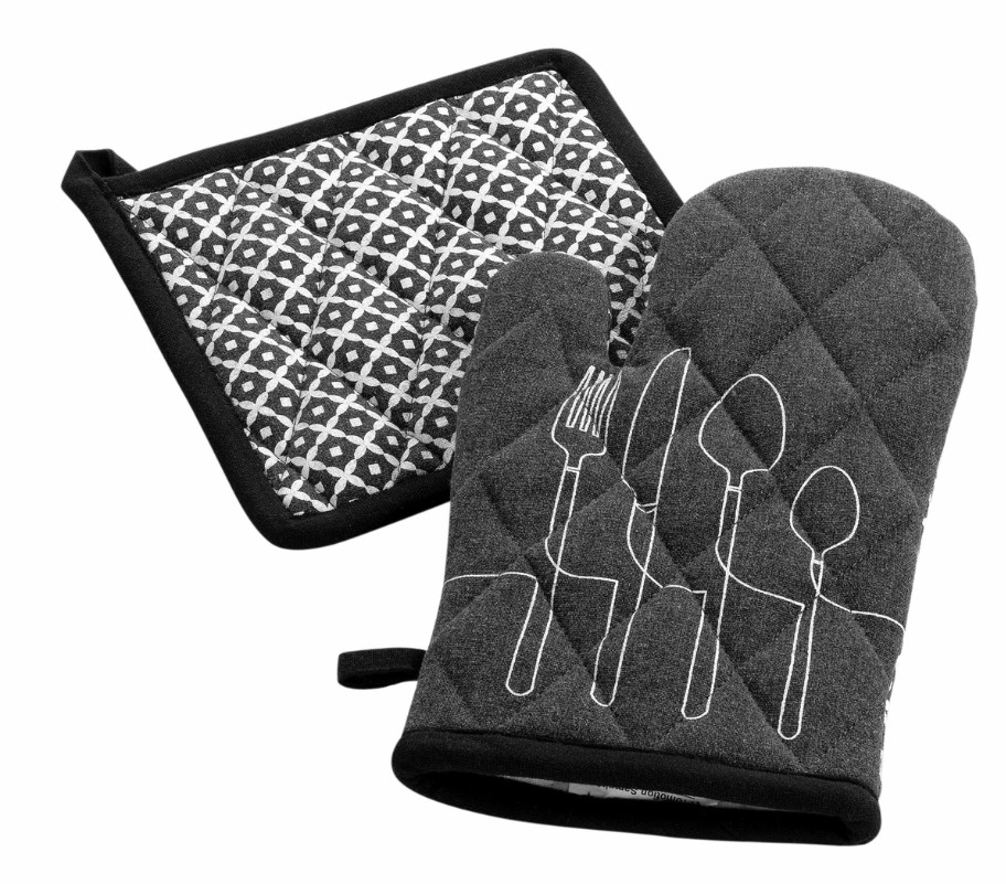 Σετ πιάστρα-γάντι Σχ. Cuisiline d.grey 100% cotton