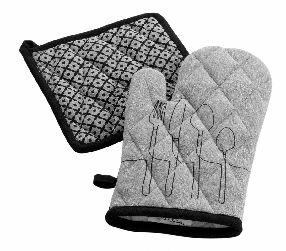 Σετ πιάστρα-γάντι Σχ. Cuisiline d.grey 100% cotton