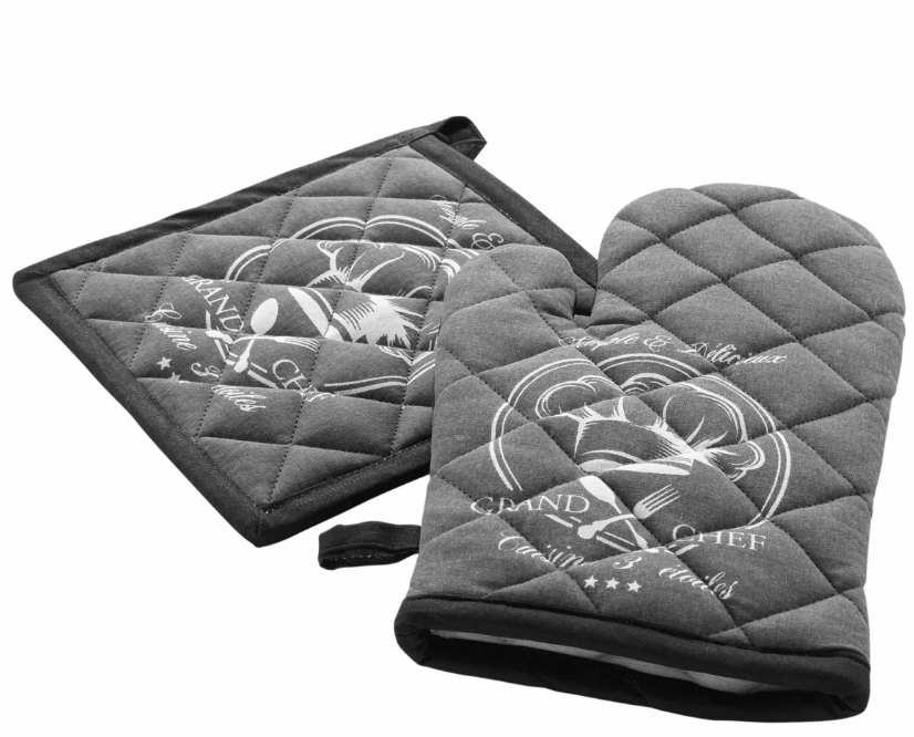 Σετ πιάστρα-γάντι Σχ. Cuisiline d.grey 100% cotton
