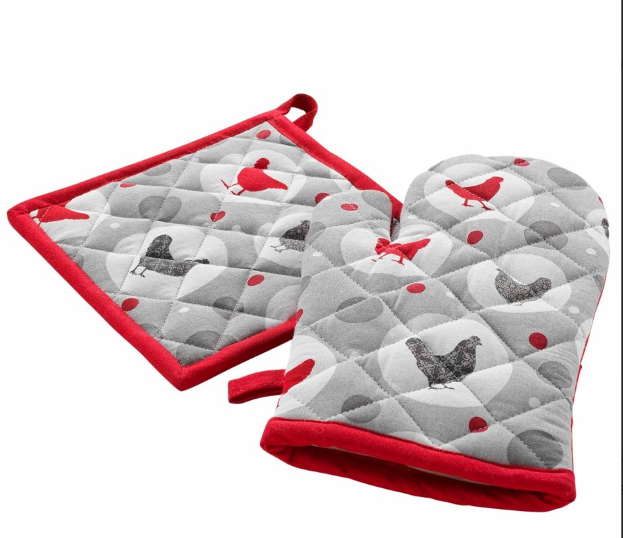 Σετ πιάστρα-γάντι Σχ. Cuisiline red 100% cotton