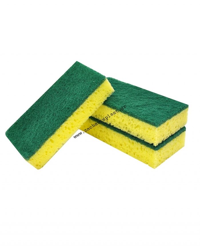 Το σφουγγάρι κουζίνας με απλή φίμπρα καθαρισμού σε πράσινο χρώμα, που είναι κολλημένη με πολυεστερικό αφρό, είναι κατάλληλο για χρήση σε κάθε είδους επιφάνεια.