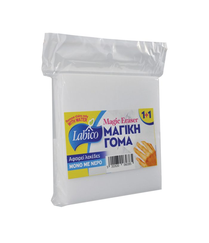 Το σφουγγάρι γόμα είναι ιδανικό για τον καθαρισμό όλων των λεκέδων ακόμα και των πιο επίμονων. Λειτουργεί σαν μια κλασσική γόμα! Χρησιμοποιήστε το με νερό για να καθαρισετε λεκέδες σε τοίχους, πλακάκια, ηλεκτρικές συσκευές, έπιπλα ακόμα και παπούτσια.