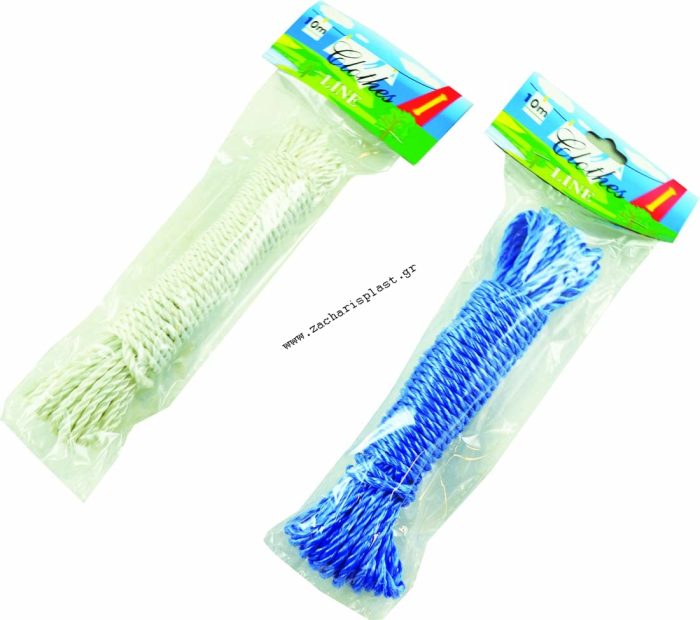Ενισχυμένο σχοινί ρούχων σε τεμάχια των 20 μέτρων σε διάφορα χρώματα.