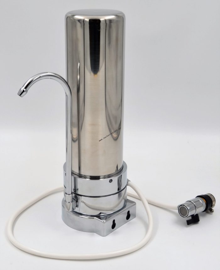 Συσκευή φιλτραρίσματος νερού σε ανοξείδωτο μεταλλικό περίβλημα,προσαρμόζεται στη βρύση με ανταλλακτικό φίλτρο ενεργού άνθρακα για κάθε τύπο βρύσης,εξαιρετικής ποιότητας.