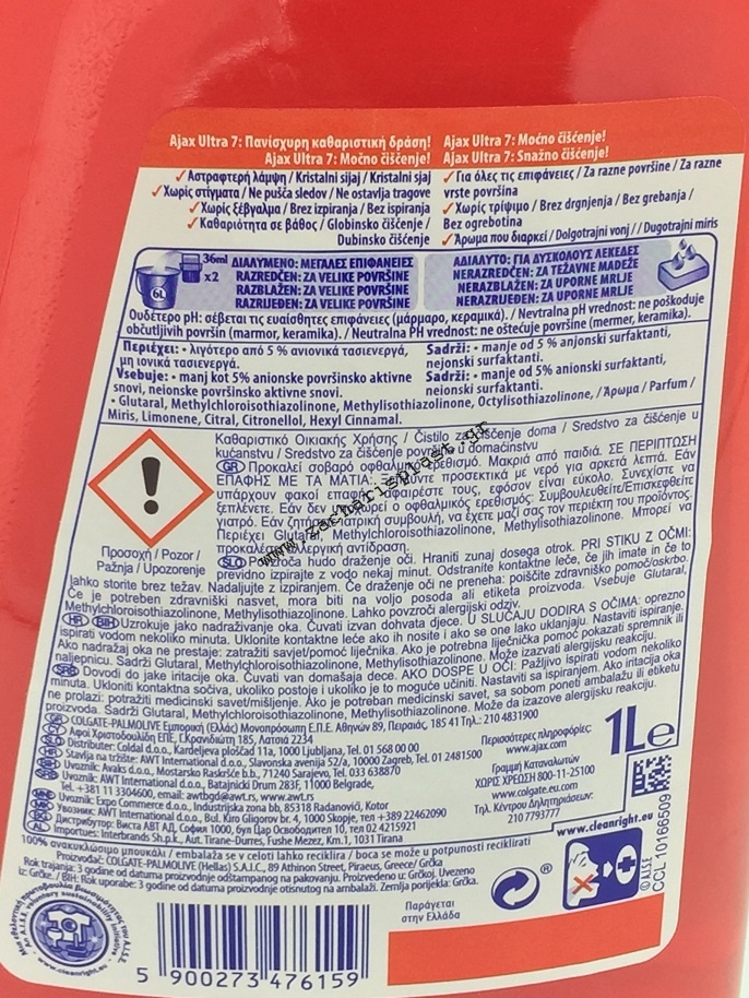 AJAX ΓΕΝΙΚΟΥ ΚΑΘΑΡΙΣΜΟΥ 1L καταλληλο για ολες της επιφανειες με αντιβακτηριακη δραση κ καταπολεμηση των οσμων