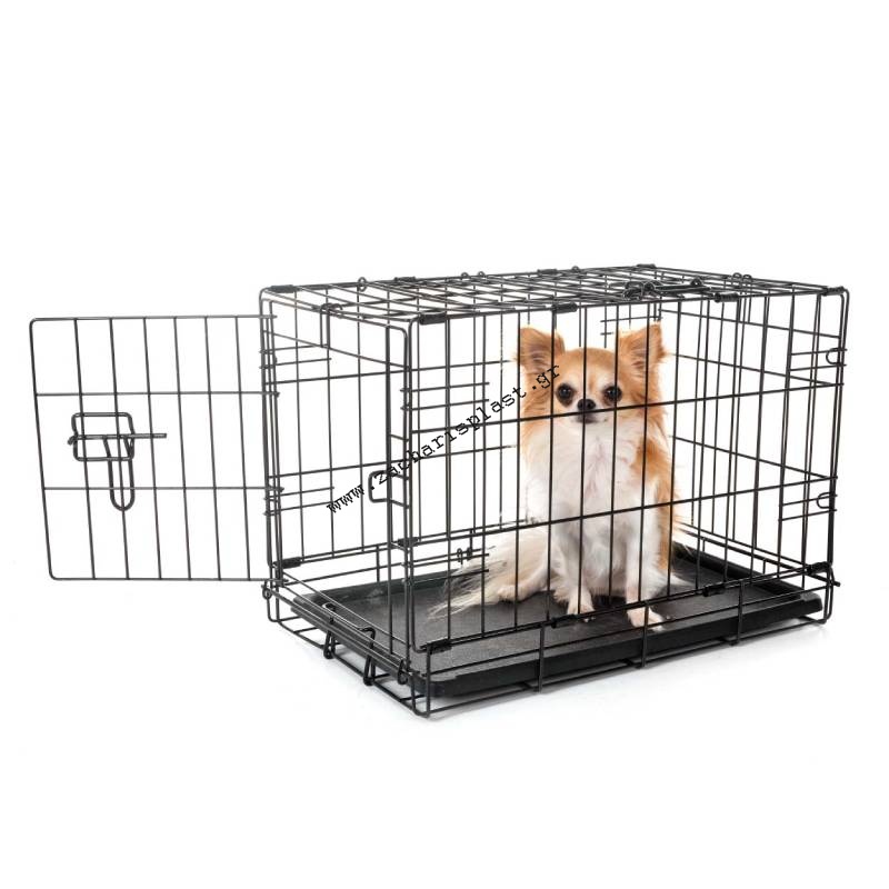 Συρμάτινο κλουβί σκύλου κατασκευασμένο από ανθεκτικό κράμα χάλυβα επικαλυμμένο με ανθεκτικό φινίρισμα κατά της σκουριάς.